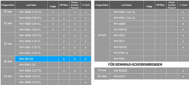 30-mm-Felgenprofil zeichnet sich das RS330 vor allem durch das 2:1-Speichenystem am Hinterrad (OptBal), die zuverlässige Shimano Konuslager-Technologie und seine Kompatibilität mit sowohl 10- als