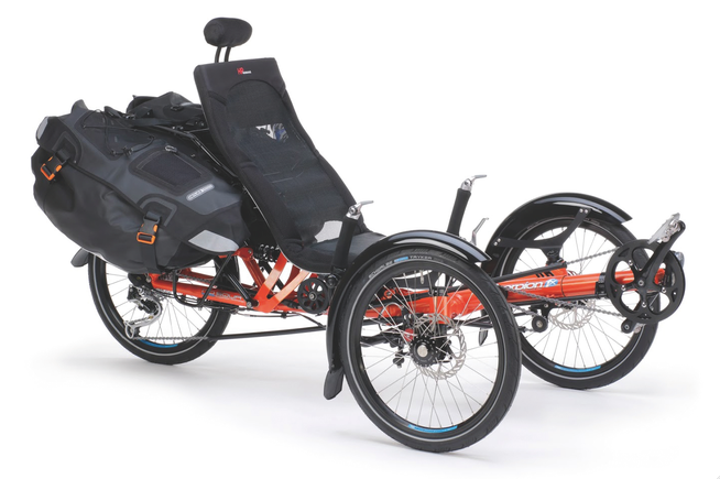 Damit kann man jetzt bis zu vier Gepäcktaschen (Bild) mit bis zu 50 Kilo Gewicht transportieren. Das um fünf Zentimeter erhöhte Tretlager soll effizienteres Pedalieren ermöglichen. Unverändert
