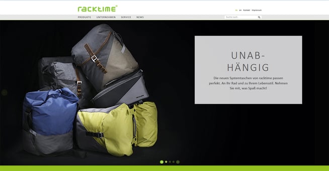 Der Kunde findet jetzt im Bereich "Produkte" alle wichtigen Informationen rund um das Racktime- Programm. Erstmals wird hier auch das neue Racktime-Taschenprogramm vorgestellt. Über einen neu eingerichteten Feedback-Button kann eine direkte Rückmeldung zum jeweiligen Produkt erfolgen. "Diese Funktion war mir sehr wichtig, damit der Kunde die Möglichkeit hat, uns sein direktes Produktfeedback zu übermitteln", so Geschäftsführer Peter Ronge. "Wir sind offen für Kritik und Anregungen oder Produktideen, die wir in unsere tägliche Entwicklungsarbeit einfließen lassen."