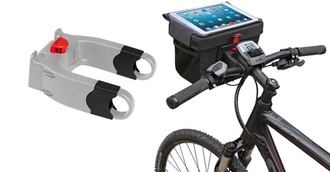 Taschenhalter von Klickfix gehören zum beliebtesten Zubehör der Tourenszene. Da manche E-Räder durch das mittig montierte Display (siehe Foto) aber viel Platz am Lenker brauchen, bietet Klickfix jetzt das Distanzset E.