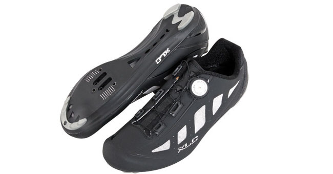 Mit Schwarz liegt man auch bei Radschuhen nicht daneben: Schwarz ist edel. Schlank, aerodynamisch und elegant wirken daher die neuen Road-Schuhe für Einsteiger von XLC. Die Anpassung erfolgt – wie auch beim MTB-Modell – über einen Atop-Drehverschluss mit nur einem Rädchen.