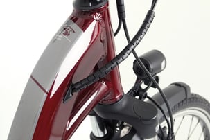 Wahlweise gibt es das zuverlässige Pedelec mit Rücktrittbremse oder Freilauf. Weitere Pluspunkte sammelt das Falter E9.5 mit seiner sehr auf Ordnung bedachten Kabelverlegung im Lenkerbereich und auch mit einigen gut geschützten – da im Rahmeninneren verlegten – Leitungen.