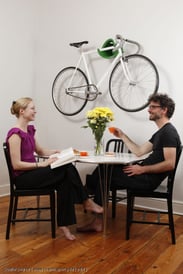 Nicht wundern: Radfahrer nehmen ihr Fahrrad mit ins Schlafzimmer. Das ist kein Tick, sondern eine pragmatische Lösung. Das Schmuckstück will man doch nicht nachts auf der Straße alleine stehen lassen. Gerade in einem Klau-Viertel. Das musst auch du einsehen. Lieber wird es durch das enge Treppenhaus geschleppt. Für die heimische Wohnung gibt es doch praktische Wandhalterungen (z. B. „Cycloc Solo“, 74,99 Euro). Einfach mal beide Augen zudrücken …