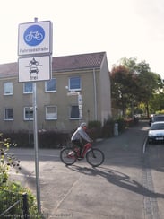 Die Geschwindigkeitsregelung in Tempo‐30‐Zonen ist klar. Aber für Radfahrer gibt es noch einen Nebeneffekt: Hier gibt es keine Radwegebenutzungspflicht und der Radverkehr fließt auf der Fahrbahn mit den Kraftfahrzeugen. Das gilt im Übrigen auch, wenn ein Radweg vorhanden ist. Der Radfahrer kann selbst entscheiden, ob er diesen nutzen möchte