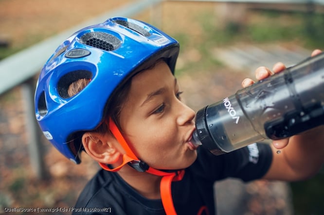 Kurze Pause nach einer wilden Fahrt. Der Quellbrunnen am Fuße der Felsen lädt zum Auftanken ein – das erfrischt.
