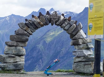 Ich steige aus der Gaislachkoglbahn und gebe dem Bike-Visual-Trainer die Sporen in Richtung Eebme Line. Merkwürdige Blicke, aber das kenne ich vom Fatbiken. Der berühmte Steinbogen, tausendfach fotografiert. Ich halte an. Vielleicht kann sich die Sonne für einen Moment vordrängeln. Wie heißen eigentlich Stoßgebete für besseres Fotolicht? Scheiß aufs Wetter, es geht talwärts! Ich nehme Tempo auf. Die ersten Steilkurven: Der Bike-Visual-Trainer ist spurstabil und definiert in der Lenkung. Los, zum ersten Kicker! Mmmmh, gut, Airtime ist seine Sache nicht, der ungewohnte Schwerpunkt verhindert eine präzise Landung. Wir bräuchten vermutlich mehr Zeit, um uns aneinander zu gewöhnen. Anders im berühmten Wallride der Teäre Line. Das ist gut! Holz zu Holz. Das verträgt sich! Die Federung pariert perfekt, Lenkbewegungen werden eins zu eins übertragen. Der Grenzbereich scheint unerreichbar weit entfernt, vielleicht sogar jenseits meiner Fahrtechnik und meines Mutes. So muss ein Bike sein: besser als sein Fahrer. Soweit zu den ersten Metern mit dem Bike-Visual-Trainer.