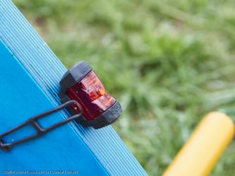 Ziemlich nackt und unfertig steht der Bike-Visual-Trainer vor mir – ich schreite ins Testmateriallager und greife beherzt zu. Grundsätzliches wie Griffe, Flaschenhalter oder Beleuchtung sind Pflicht. Der Bike-Visual-Trainer hat jedoch keinerlei Ösen oder Anlöter. Klar, der Rahmen ist aus Holz. Ich muss improvisieren. Dabei hilft mir SKS Germany. Zwei Paar der „Anywhere Adapter“ geben dem Flaschenhalter und der Pumpe („Injex T‑Zoom“, vom selben Hersteller) sicheren Halt auf dem Hauptrahmen. Den zu kurzen O‑Ring des „Ixxi“-Rücklichts von Busch & Müller verlängere ich einfach mit einem Kabelbinder, schon sitzt es perfekt. Genauso verfahre ich mit dem Scheinwerfer „Core“. Beim Computer „Super GPS“ von Lezyne mache ich mir den großen Lieferumfang zunutze: Ich fädele zwei O‑Ringe zusammen. Bei der Gelegenheit habe ich auch das Mudguard „Flap Guard“ (schon wieder SKS Germany) mit Kabelbindern fixiert.