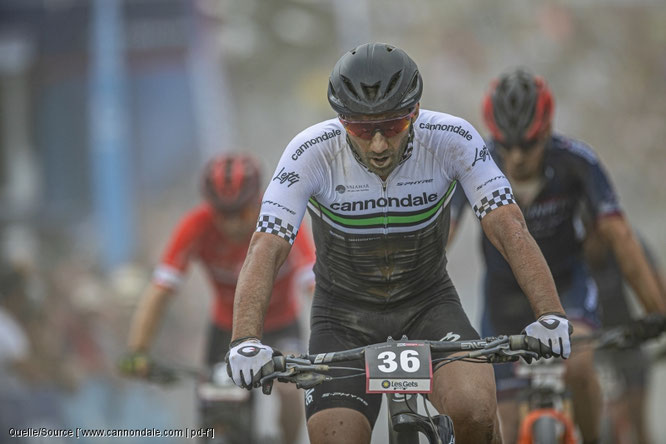 Ich find das super! Mir als technisch versiertem Fahrer kommen solche Strecken aber auch sehr entgegen. Früher war die reine Ausdauer im Crosscountry wichtiger. Die heutigen Strecken fordern da eher eine gute Balance zwischen Ausdauer und fahrtechnischem Können. Und für das Publikum ist es natürlich viel interessanter, auf technischen Strecken zuzuschauen. Da sieht man richtig gut, ob das Rad perfekt abgestimmt ist, ob der Fahrer es einfach drauf hat und so richtig smooth über ein Hindernis gekommen ist, das macht halt echt Spaß. Das hat aber auch extrem mit der Entwicklung der Räder zu tun. Die Räder, die wir heute nutzen, können so viel mehr als die Räder vor 20 Jahren! Die Federung funktioniert mittlerweile so gut und die Bremsen sind auch um Welten besser, das vermittelt einem ein ganz anderes Sicherheitsgefühl. Damit kann man viel besser mit technischen Streckenelementen wie Sprüngen oder Steinfeldern umgehen. Das merken auch Laien sehr deutlich. Wenn jemand, der ein altes Mountainbike gewohnt ist, auf ein gut eingestelltes aktuelles Rad steigt, dann wird er sich wundern, wie viel Kontrolle, Grip und Spaß das bringt. Und wie viele Fehler es verzeiht.