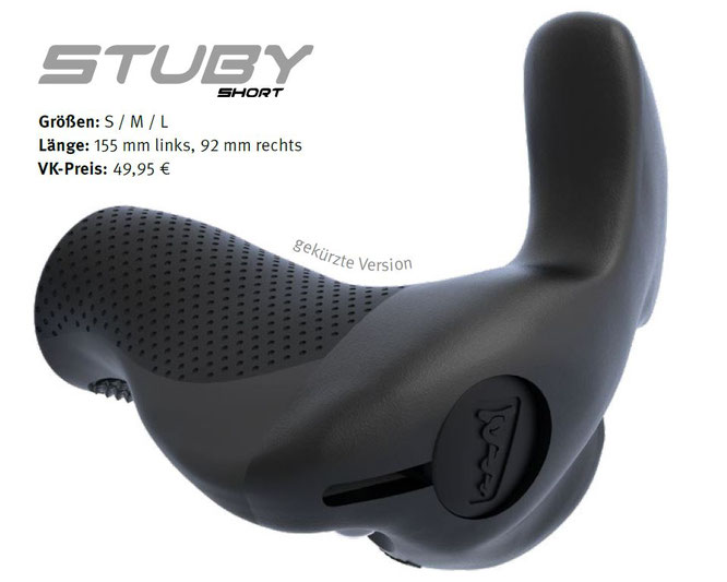 „Stuby“-Barend aber auch wie herkömmliche Barends greifen, wodurch die Sitzposition etwas sportlicher wird. Somit bietet der „Stuby“-Griff trotz der kompakten Bauweise viele verschiedene