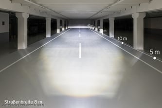 Diese Frage beantwortet die Straßenverkehrszulassungsordnung (StVZO §67,3 Absatz 2) seit 2017 wie folgt: „Der Scheinwerfer muss so eingestellt sein, dass er andere Verkehrsteilnehmer nicht blendet.“ Klingt einfach, ist aber dann doch kompliziert. In der früheren Fassung des Gesetzestextes war die Vorgehensweise deutlich präziser benannt: „Der Lichtkegel muss mindestens so geneigt sein, dass seine Mitte in fünf Meter Entfernung vor dem Scheinwerfer nur halb so hoch liegt wie bei seinem Austritt aus dem Scheinwerfer“, hieß es bis zur Reform 2017. „Diese Regelung bezog sich allerdings auf Halogen-Scheinwerfer. Für moderne LED-Strahler ist sie veraltet. Das wurde vor drei Jahren mit der Gesetzesanpassung klargemacht“, sagt Sebastian Göttling vom Lichtexperten Busch & Müller.