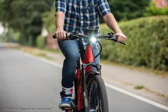 „Für die meisten Radfahrer ist eine Ausleuchtung bis ca. 50 Meter aber am angenehmsten“, weiß Sebastian Göttling. Das bringt den Radfahrenden den Vorteil einer besseren Sicht – selbst bei höheren Geschwindigkeiten. Deshalb ist die richtige Einstellung auch abhängig von der durchschnittlichen Fahrgeschwindigkeit, wie Göttling erläutert: „Es ist wichtig, den Scheinwerfer so einzustellen, dass man die Helligkeit optimal nutzen kann. Das ist gerade bei höheren Geschwindigkeiten um 25 bis 30 km/h, wie sie beispielsweise sportliche oder E‑Biker leicht erzielen, wichtig, um sicher vorausschauend fahren zu können.“ Sein Tipp deshalb: Testfahrten abseits des Verkehrs, z. B. auf einem dunklen Parkplatz, um die individuelle, der Fahrgeschwindigkeit angepasste Einstellung zu finden.