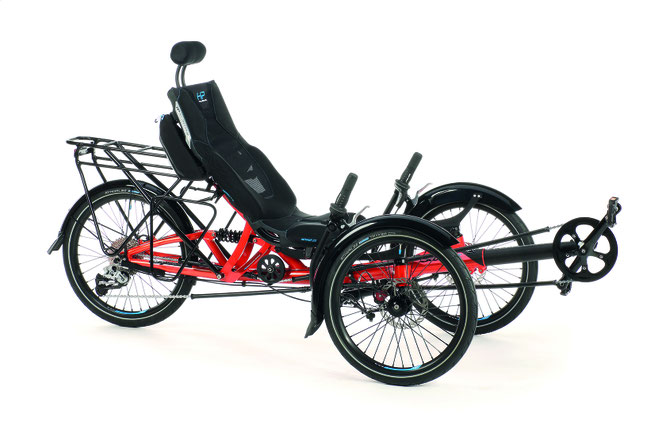 Dreirad-Baureihe Gekko ausgewählte Komfortelemente übertragen: Das Einsteiger-Trike der hessischen Manufaktur zeichnet sich durch einen Sitz aus, der in die faltbare Rahmenkonstruktion integriert