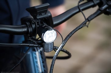 Der wichtigste Tipp beim Fahrradlicht: einschalten! Bei trübem Wetter erhöht man so die eigene Sichtbarkeit und Sicherheit deutlich. Wenn das Licht nicht funktioniert, kann ein lockeres Kabel die Ursache sein. Am besten prüft man vor dem Beginn der dunklen Jahreszeit die Steckverbindungen der Lichtanlage – auch beim Rücklicht. Geht das Licht immer noch nicht an, ist ein Gang in die Werkstatt unvermeidlich. Akku-Leuchten müssen vor Fahrtantritt regelmäßig auf ihre Ladung geprüft werden. Wie beim E‑Bike-Akku sinkt auch hier bei Kälte die Leistung. Auch deshalb darf man die Leuchten nicht draußen am Rad vergessen. Für die richtige Einstellung des Scheinwerfers gilt: Der Gegenverkehr darf nicht geblendet werden. Zur groben Orientierung sollte der hellste Fleck des Scheinwerfers etwa zehn Meter vor dem Rad auf der Straße liegen.