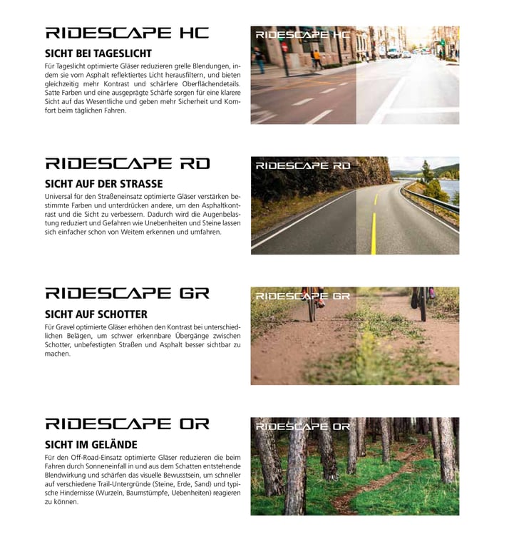 - Gläser: RIDESCAPE RD, OR, and GR