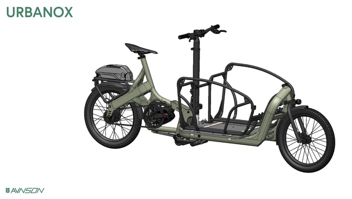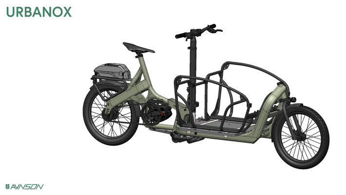 Alle Urbanox-Modelle sind aus wärmebehandeltem Aluminium 7005/T6 gefertigt, was außergewöhnliche Haltbarkeit und Leichtigkeit verspricht. Mit einem Antrieb von Shimano erhalten die Urbanox Cargo-Bikes kraftvolle Unterstützung. Urbanox verfügt über ein modulares Adaptersystem, das die Kompatibilität mit Antriebssystemen unterschiedlicher Hersteller sicherstellt. Diese modulare Lösung erlaubt es, den Motor nach Belieben zu aktualisieren oder auszutauschen, ohne dass ein neues Fahrrad erforderlich wird. Die Tretlagerposition ändert sich nicht. Auch beim Akku setzt AVNSON auf Modularität. Alle handelsüblichen Akkus können mit modularem Adaptersystem auf der Gepäckträgerplatte montiert werden. Die Urbanox-Modelle sind mit einem Seilzuglenkungssystem sowie 20-Zoll-Laufrädern ausgestattet und auf ein zulässiges Gesamtgewicht von 200 kg ausgelegt. Das zugrundeliegende Konzept zielt darauf ab, die Ladefläche effektiv zu nutzen, um die Gesamtlänge des Fahrrads zu verringern.