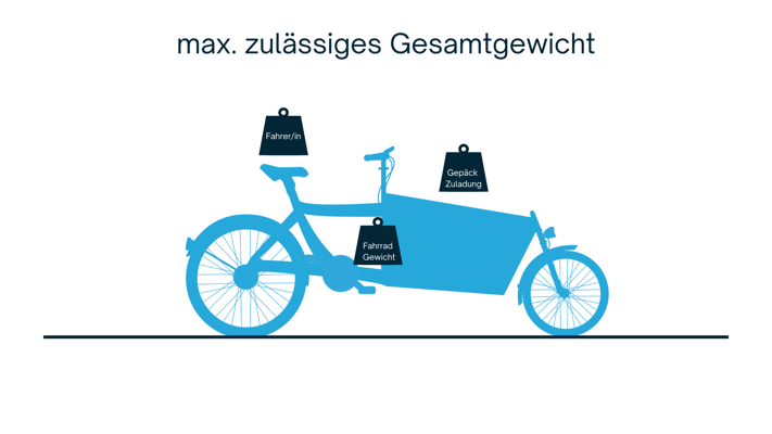 - **Zulässiges Gesamtgewicht:** Dies ist das maximale Gesamtgewicht, das ein Fahrrad oder Pedelec tragen kann, einschließlich Fahrer, Gepäck und Zubehör.
