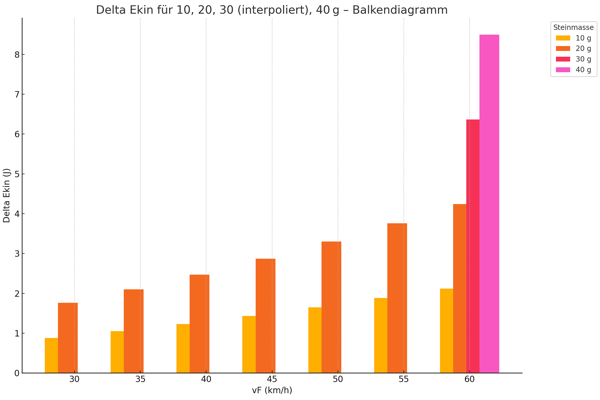 - Bei 60 km/h erreicht ein 40 g Stein bis zu 8,3 Joule