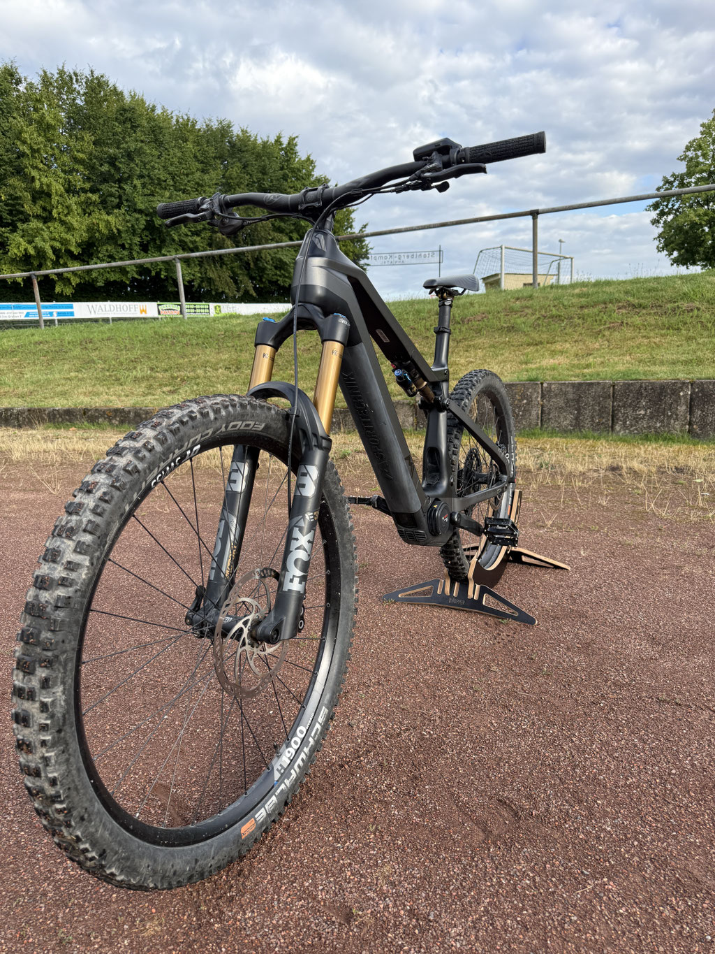 Die Fox 38 Factory-Gabel und der Fox Float-X-Factory-Dämpfer harmonieren präzise: Das Fahrwerk spricht fein an, bleibt in ruppigem Downhill aber stets stabil. Dank der Factory-Ausstattung kann hier fein auf die Ansprüche des Fahrenden eingestellt werden. Angetrieben wird das Bike vom Bosch Performance Line CX Gen5, der mit seinen 100 Nm (nach dem Bosch-Update) so viel Leistung bietet, dass Uphill-Passagen sowie schnelle, technische Trails für das System kein Problem sind. Der 600 Wh PowerTube-Akku ergänzt das Set-up smart und lässt sich dank Fidlock-Verschluss leicht wechseln – optionale 400 Wh- oder 800 Wh-Varianten bieten Flexibilität.