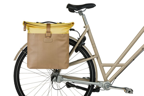 Die Basil Vive definiert die klassische Fahrradtasche neu – mit modernem, funktionalem Design aus recyceltem PET-Material und einem wasserdichten Hauptfach. Erhältlich als einzelne Shopper- oder