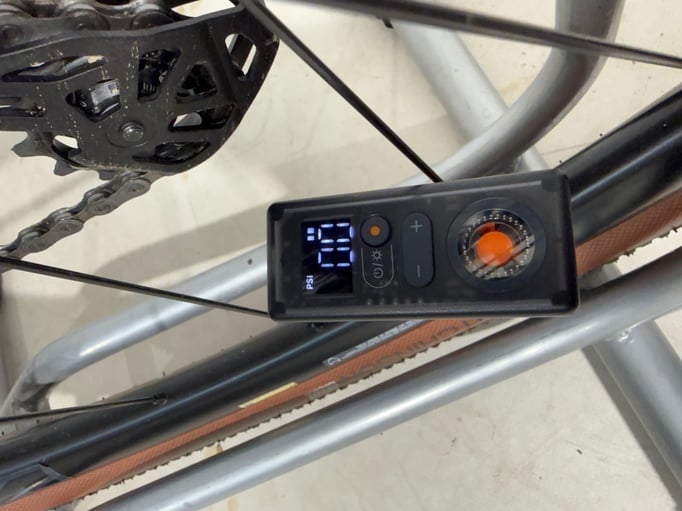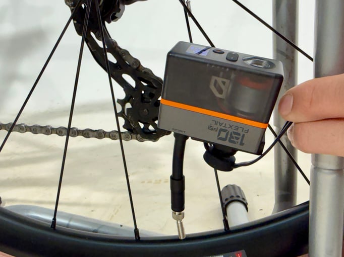 Das USB-C-Laden ist zeitgemäß und unkompliziert. In rund 35 Minuten ist der Akku wieder voll. Das interne Zentrifugalkühlsystem sorgt dafür, dass die Pumpe auch bei längeren Einsätzen nicht überhitzt. Ein Kritikpunkt bleiben dennoch: Die Pumpgeräusche sind von der Lautstärke mit der eines Staubsaugers zu vergleichen, was in Anbetracht der gesparten eigenen Energie aber verschmerzbar ist. Auch im Vergleich zu anderen bisher getesteten Pumpen bewegt sich der Lärmpegel eher im unteren Bereich. Das Fixieren des Ventilanschlusses erfordert je nach Ventil etwas Fingerspitzengefühl. Einmal angeschlossen braucht die Pumpe dann knapp unter 50 Sekunden Minuten von 0 auf 70 psi (rund 4,8Bar) bei einem 700x23c Reifen.