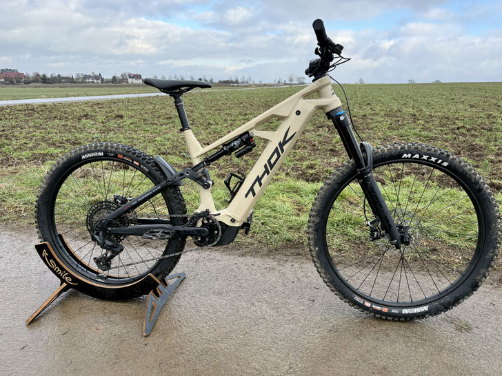 Als Enduro-Enthusiast war mein Interesse am neuen Thok TK02 S groß – vor allem, weil Thok endlich auf einen Bosch-Antrieb setzt, der im Gelände seinen hervorragenden Ruf hat. Das Bike macht schon beim ersten Blick klar: Hier steht ein kompromissloses Enduro-E-Bike, das für schwere Trails, ruppige Abfahrten und anspruchsvolle Allround-Tage entwickelt wurde.