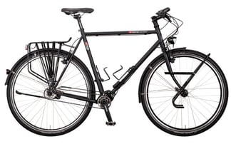Mit dem TX1200 unterstreicht Cycle Union den hohen Anspruch seiner Marken: Der Stahlrahmen kommt aus der eigenen Fabrik in Taiwan, montiert wird alles inklusive Pinion-Getriebe und Gates-Riemen in Oldenburg. Angesichts der Technik relativ unauffällig, taugt aber für härtere Radreisen. www.fahrradmanufaktur.de