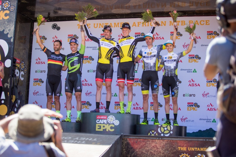 Besser kann man nicht in ein Etappenrennen starten - das Duo Daniel Geismayr/ Nicola Rohrbach vom Ravensburger Team CENTURION VAUDE holen sich das gelbe Trikot im Prolog des Cape Epic.