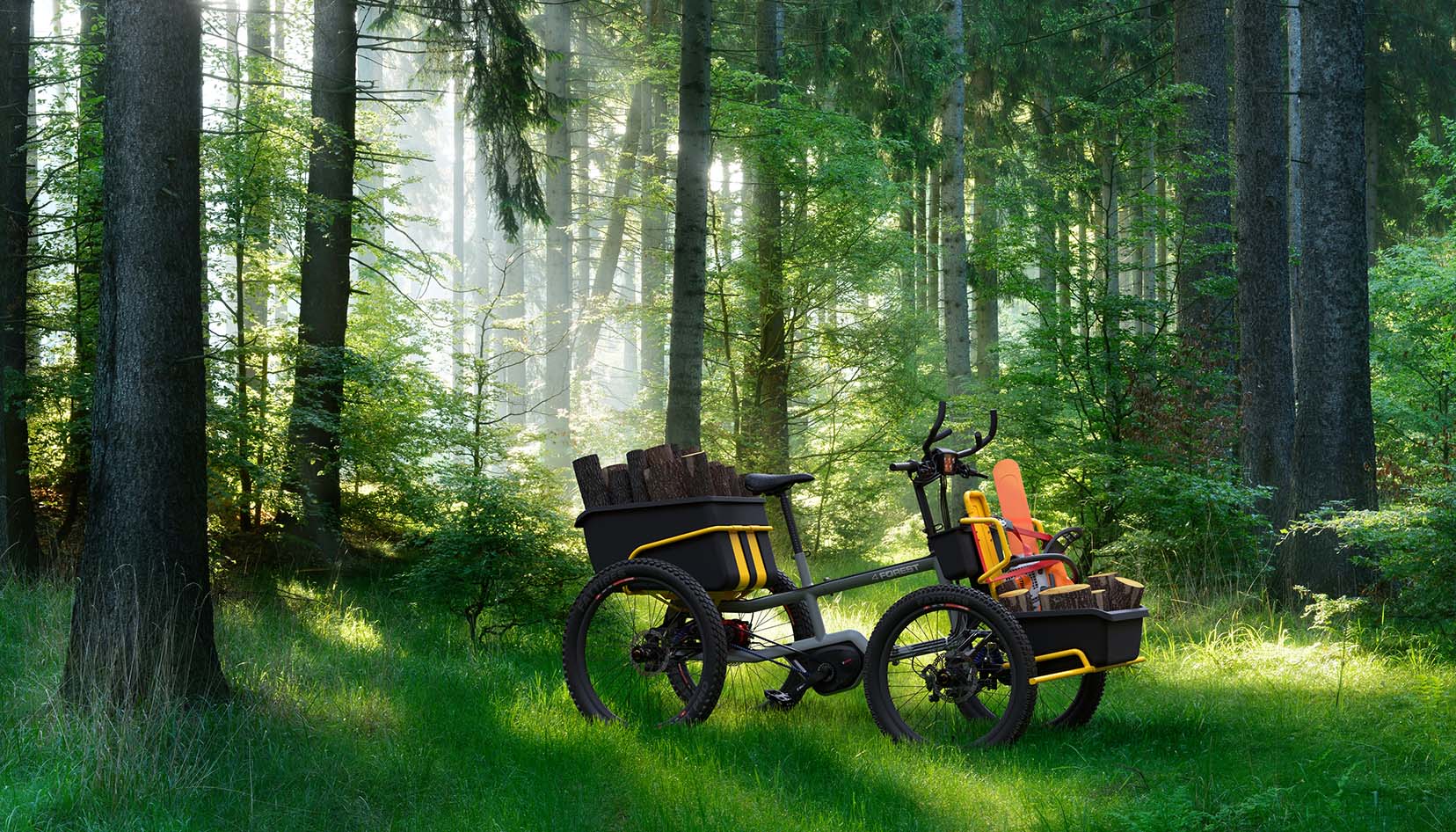 Das vom Berliner Produktdesign-Büro Werksdesign entwickelte 4forest Lastenrad ist ein praktisches und umweltfreundliches Transportmittel für den Wald und unwegsames Gelände, das Spaß macht.