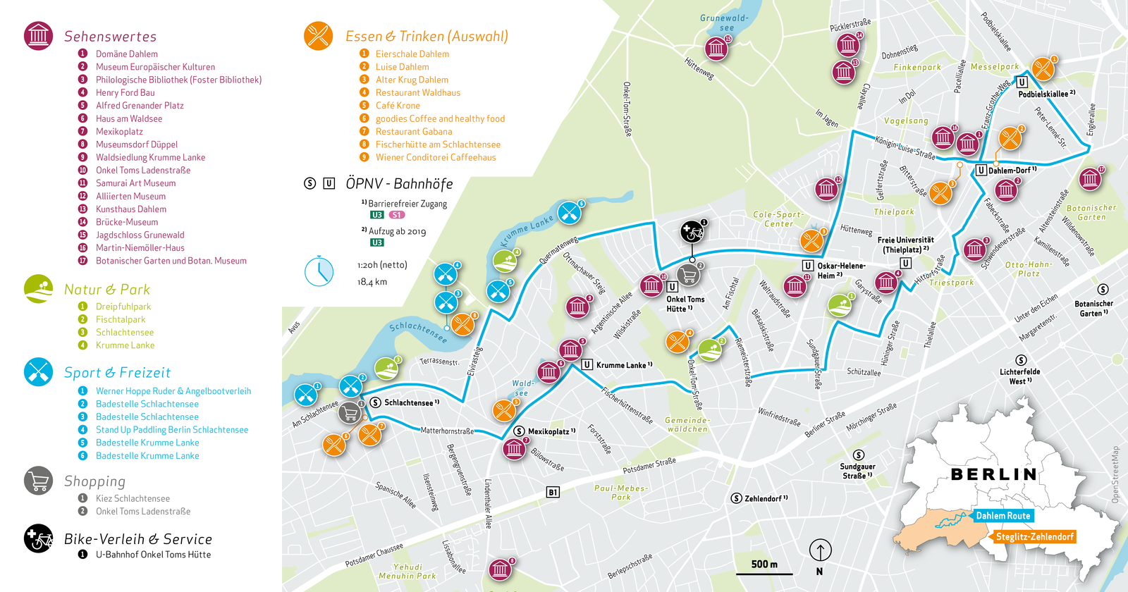 Sowohl Gäste als auch die Bürgerinnen und Bürger der Hauptstadt können sich auf ein neues touristisches Highlight freuen. Mit der Eröffnung der Dahlem Route am 29. Juni 2018 wird die erste bezirkliche touristische Radroute und somit ein wichtiger Teil des Tourismuskonzepts des Bezirks Steglitz-Zehlendorf umgesetzt.