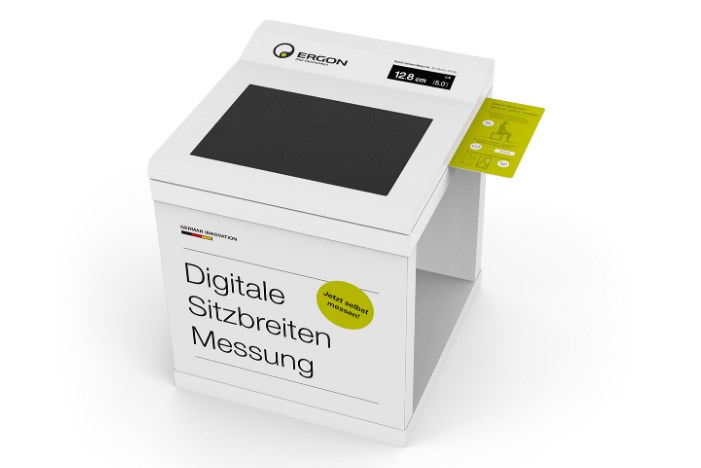 Als praktische, weil intuitiv und leicht bedienbare Verkaufs- und Entscheidungshilfe beim Kauf des individuell besten Sattels, fungiert der hübsch anzusehende TS1-Digital-Sitzhocker zur Messung des Sitzknochenabstands.