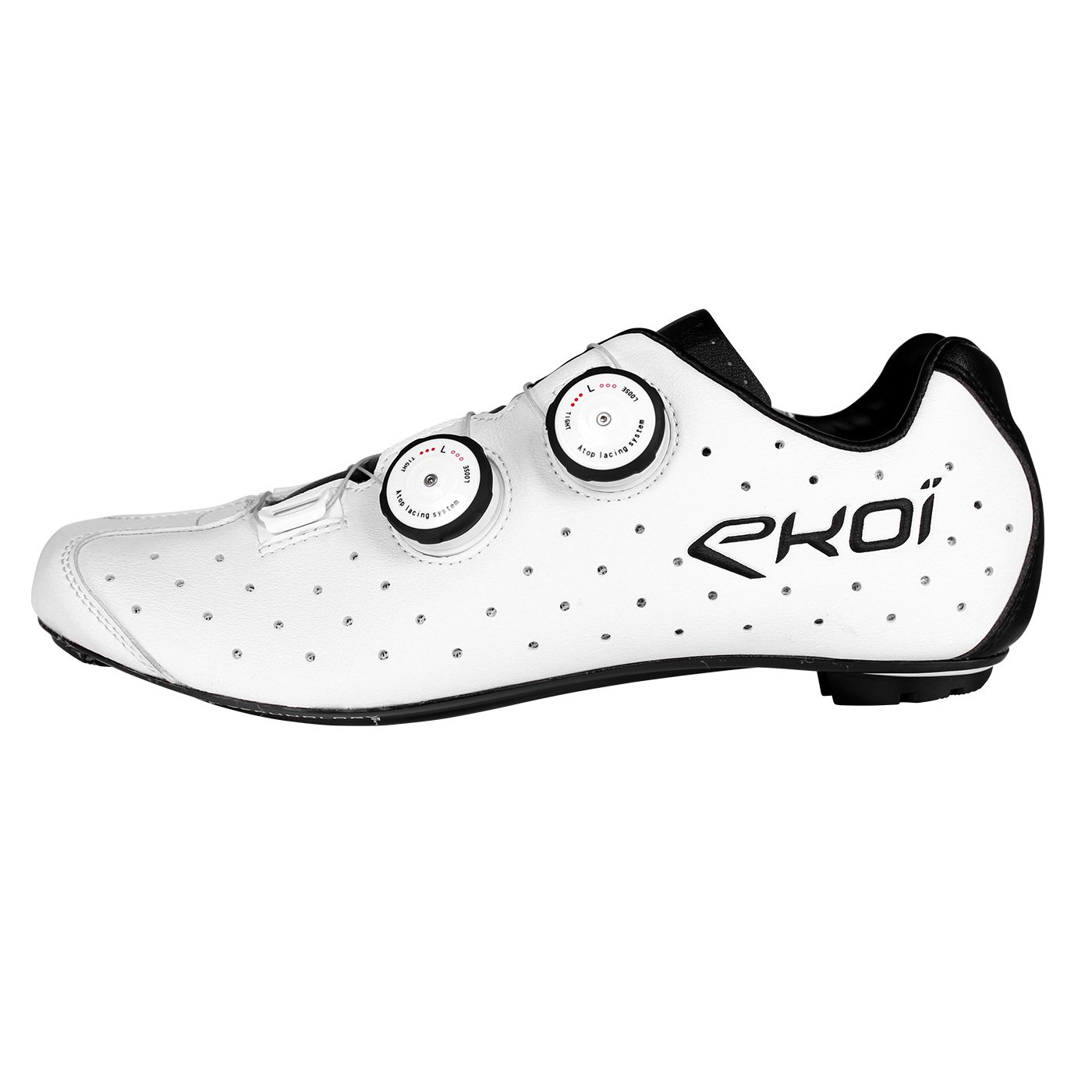 Der R4 ist die neueste Generation der EKOÏ Straßenschuhe: vielseitig und komfortabel, er bietet eine unvergleichliche Kraftübertragung, dank der ultraleichten, UD Carbon, ultradünnen (4,8 mm) Sohle.
