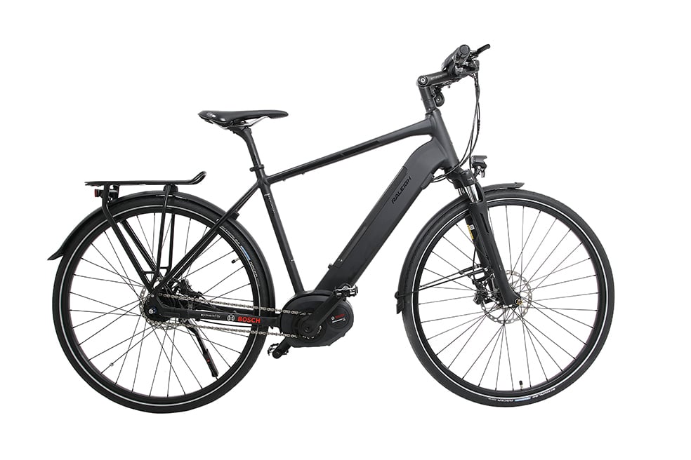 In durchgängig schwarz-matt kommt das Raleigh Kent Premium E-Trekking-Bike auf die Pisten. Nur farblich dezent abgesetzte Applikationen wie Logo und Modellname bilden minimale optische Akzente. Dadurch erscheint das Fahrrad ausgesprochen edel und zeitlos.