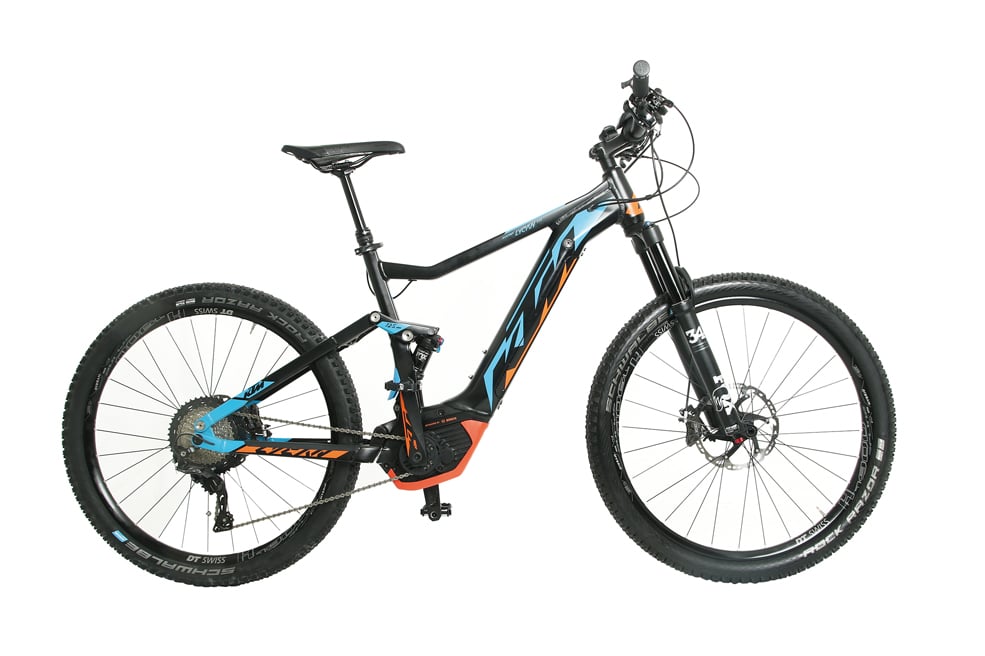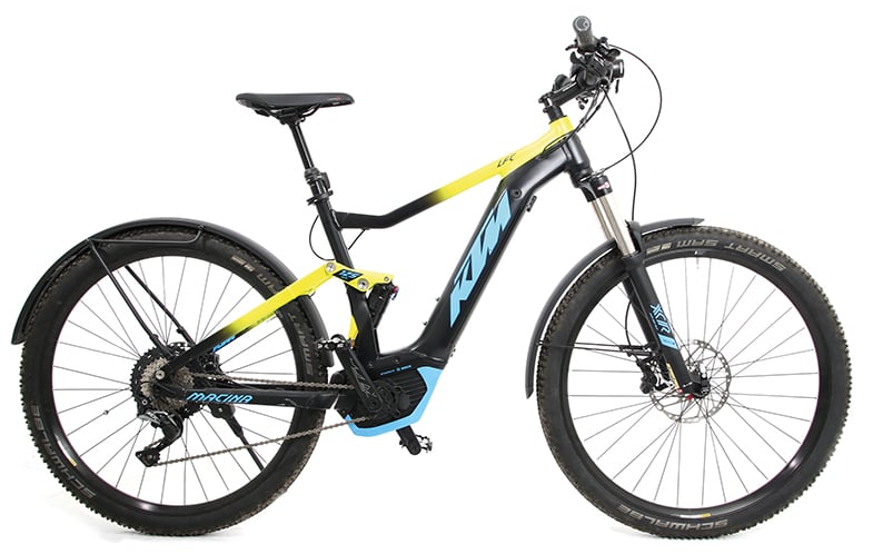 Macina, unter diesem Namenszusatz laufen alle 28 E-MTBs von KTM. Allen gemein sind ein Bosch-E-Antrieb und Akku. Die Top-Modelle der Macina-Kapoho- (E-Enduro) und Macina-Lycan-Plattform verfügen neben einem organisch geformten Aluchassis auch über Boschs leistungsstarken Performance-CX-Antrieb, gespeist von dem ins Unterrohr integrierten Powertube-500-Akku.