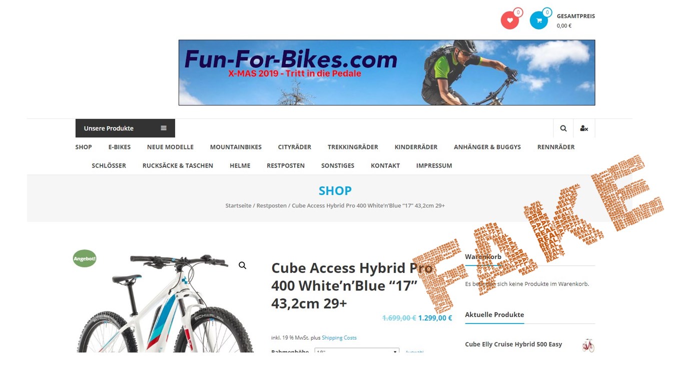 Mit einer dreisten Betrugsmasche muss sich kurz vor dem Black Friday die Fahrradbranche rumschlagen. Das angeblich in Limbach-Oberfrohna ansässige Unternehmen Fun-for-bikes.com bietet hochwertige Fahrräder an. Recherchen ergaben, dass es dieses Unternehmen dort nicht gibt. Die Polizei ermittelt, der Fake-Shop ist aber noch immer online.