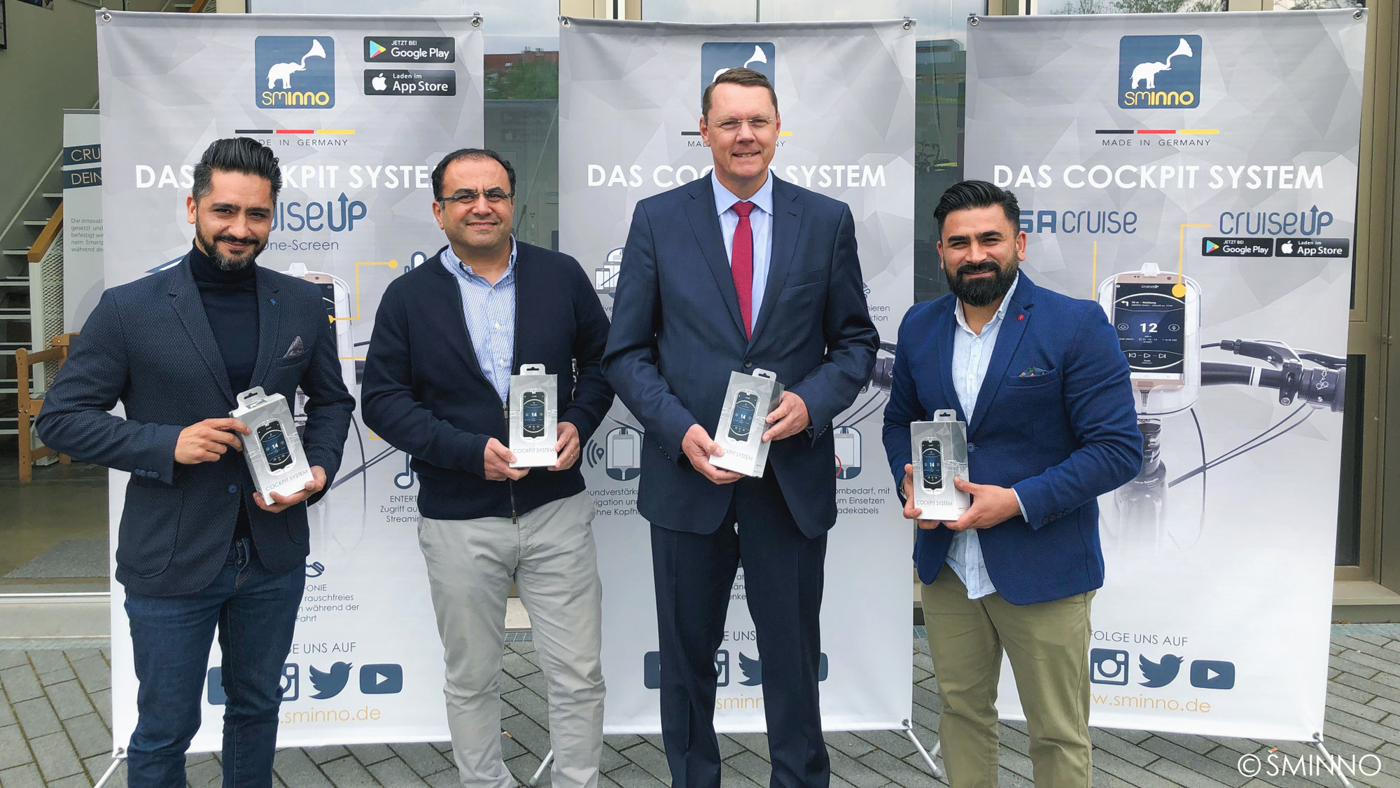 Das Cockpit-System von SMINNO ist ein ganzheitliches, patentiertes System für Zweiräder, das sowohl Hard- als auch Software umfasst. Es bietet u.a. ein Dashboard, mit dem Dienstleistungen, Informationen und Services genutzt werden können.