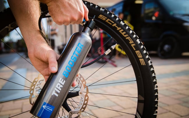 Mit dem neuen Tire Booster von Schwalbe gelingt die Montage von Tubeless-Reifen sicher. Die leichte, handliche Flasche lässt sich sowohl stationär als auch unterwegs einsetzen.
