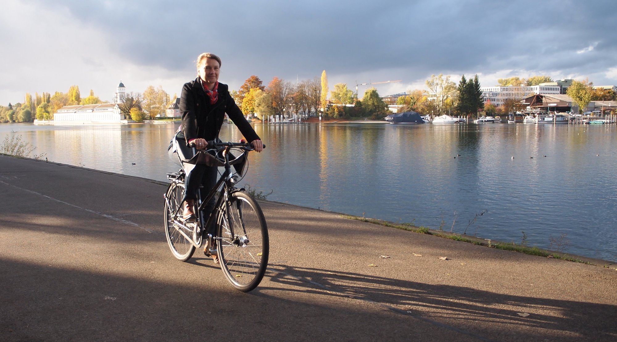 Sabine Feist, Architektin aus Konstanz, hat einen neuartigen Regenschutz für Radfahrer