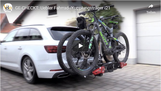 Mit dem i21-Fahrradträger ist dem Unternehmen Uebler eine echte Innovation gelungen. Der in Leichtbau gefertigte Träger wiegt gerademal 13 kg und hat in eingeklapptem Zustand eine Abmessung von nur 61 x 20 x 60 cm (BxHxT).