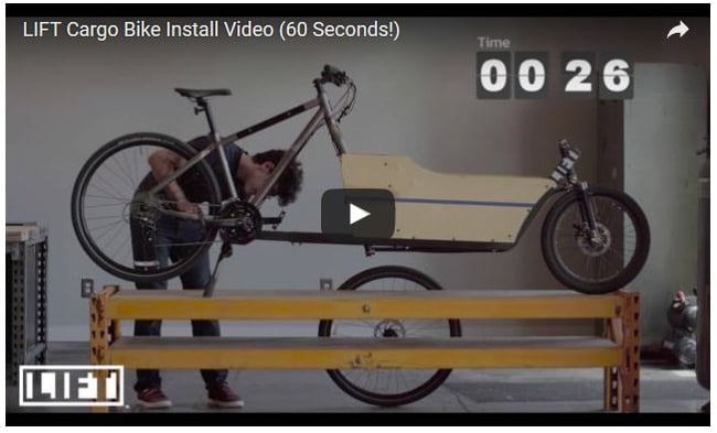 Das Umbau-Kit Lift verwandelt jedes Fahrrad in ein Lastenrad – und zwar in weniger als 60 Sekunden. Dabei kann es locker mit einem herkömmlichen Lastenrad mithalten: Es transportiert bis zu 68 kg Gewicht.