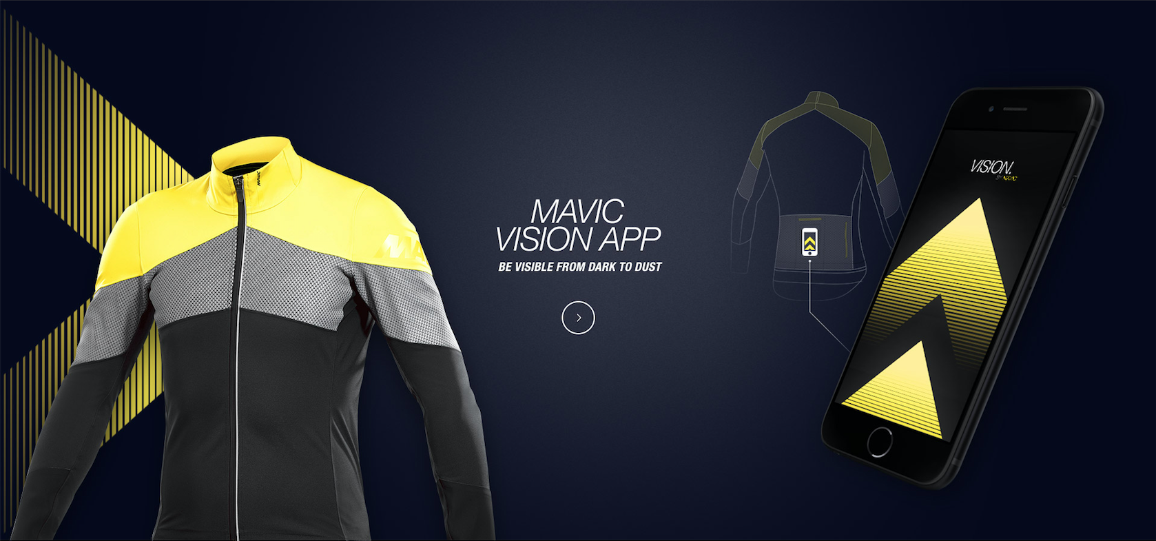 MAVIC präsentiert neues Tool für Sichtbarkeit auf dem Rad: Vision App Die kalte Jahreszeit mit ihren kurzen Tagen hält Einzug. Trainiert wird trotzdem. Radsportspezialist MAVIC präsentiert rechtzeitig die Vision App, die in Kombination mit der neuen MAVIC Cosmic Pro H2O Vision Jacket für Sichtbarkeit auf der Straße sorgt.