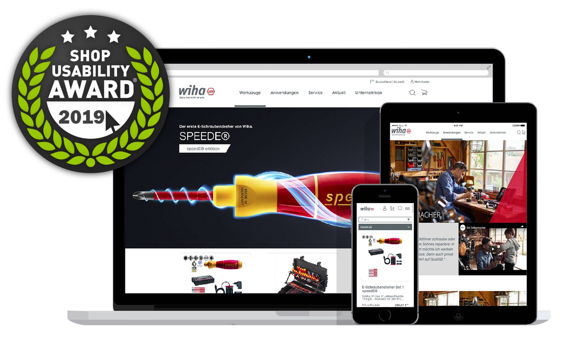Auf der neuen, im Frühjahr 2019 online gegangenen Website des Handwerkzeug Herstellers Wiha stehen die Bedürfnisse seiner Besucher und Zielgruppen klar im Vordergrund – und das auf ihre jeweils ganz eigene Art und einer Umsetzung, die nun mit dem begehrten Shop Usability Award ausgezeichnet wurde.