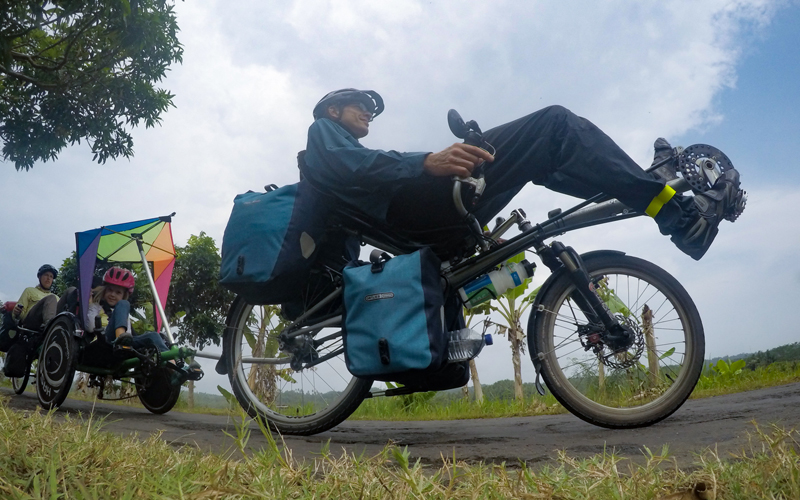 seinem Liegerad schon fast überall auf der Welt. Vor kurzem aber erstmals zu dritt: mit Frau und mit der vierjährigen Tochter Lara! Für die Familie eine sehr spannende Erfahrung. Wie spannend – das können die Besucher beim Tag der offenen Tür von HP VELOTECHNIK