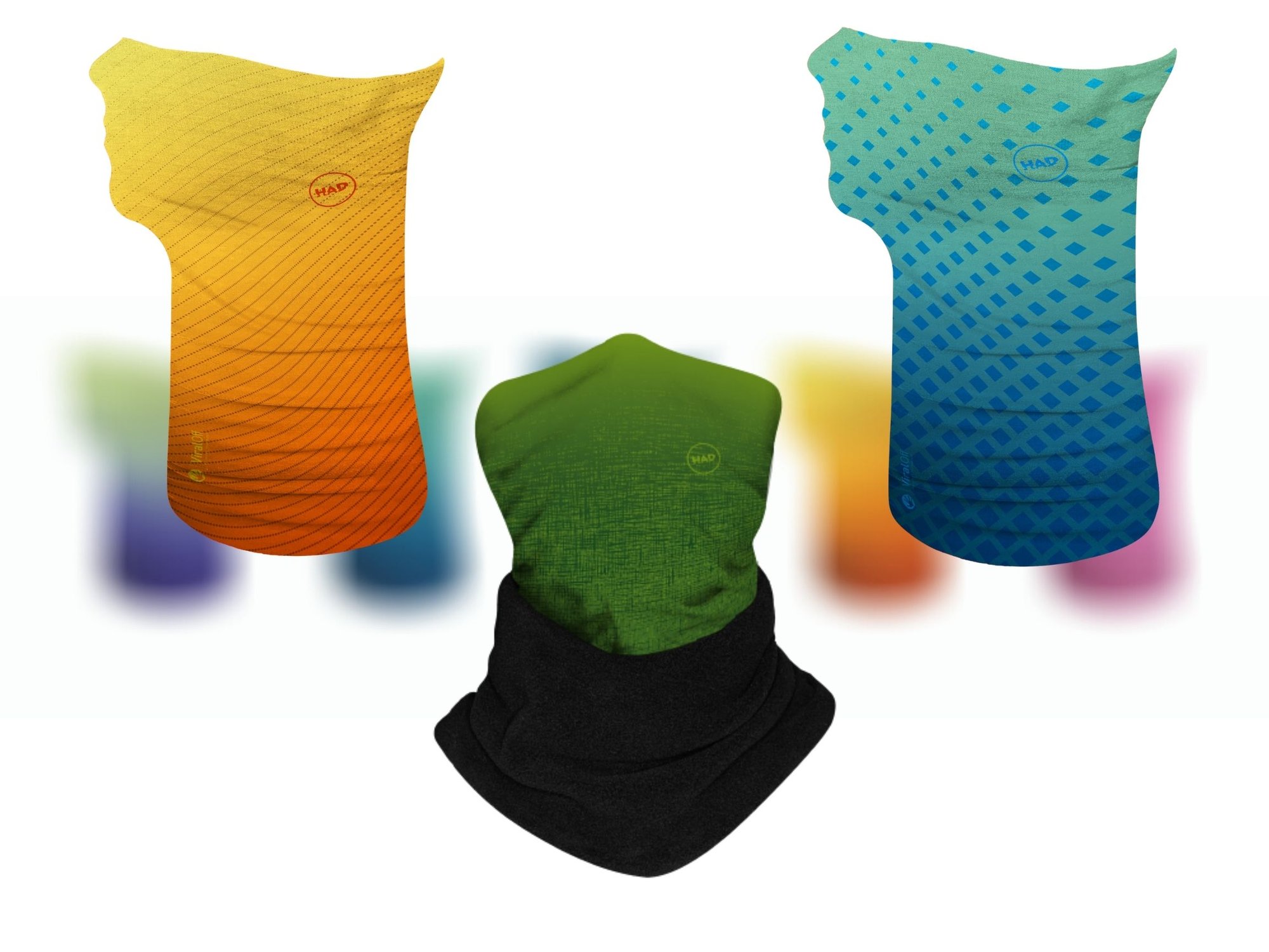 getragen. Mit dem neuen innovativen und selbstreinigenden H.A.D. Viral Off Multifunktionstuch hat man immer eine vielseitige und vor allem gut schützende Alternative zur Maske dabei.